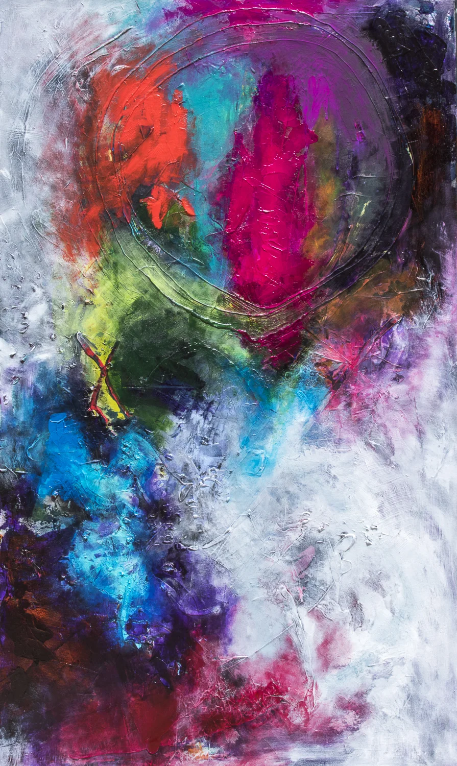 acrylic, oil stick, ink on stretched canvas